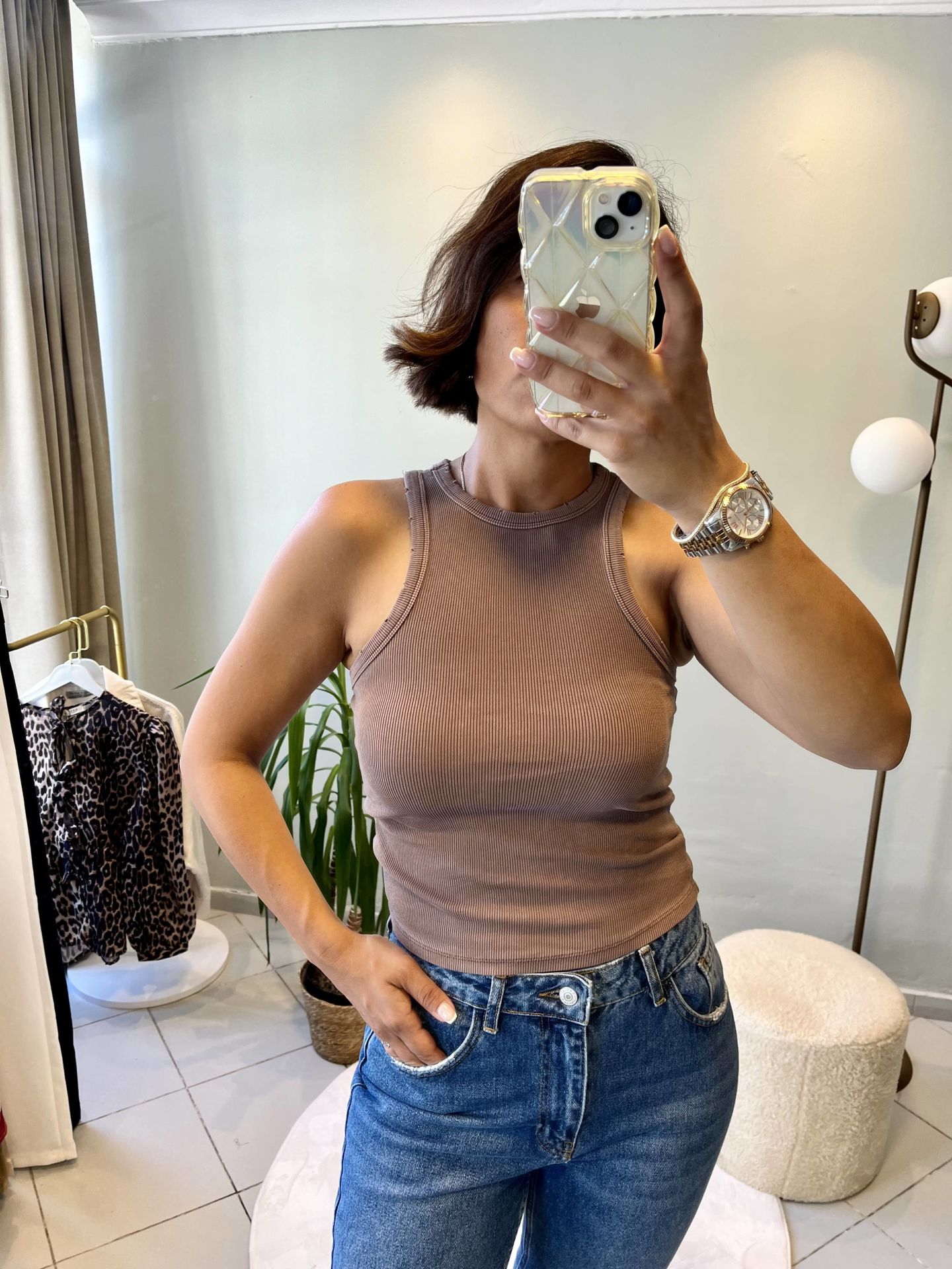 Fitilli Halter Top Kahve