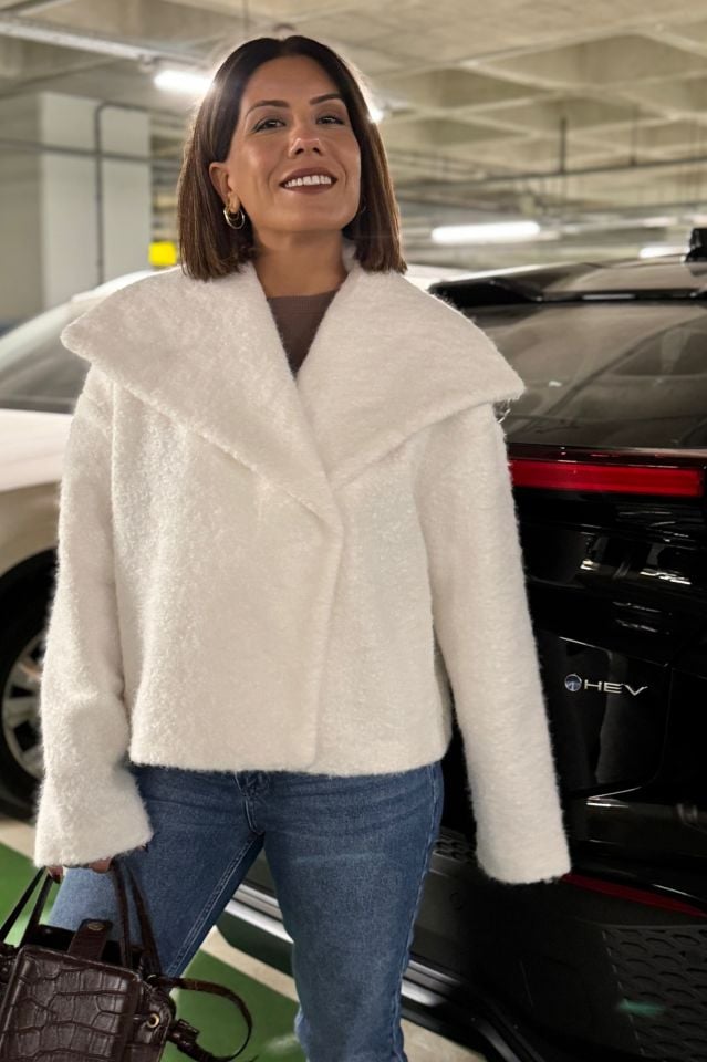 Kruvaze Şal Yaka Buklet Ceket Ekru