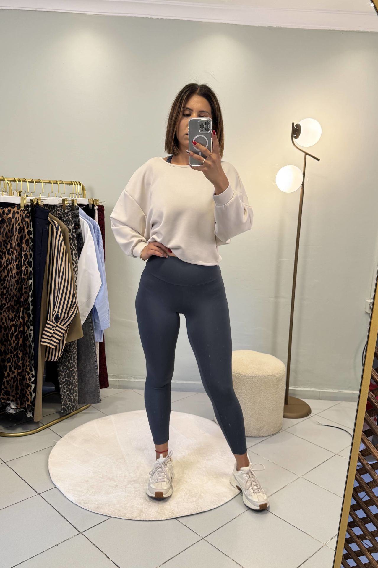 Yüksel Bel Bilek Boy Tayt Gri Mavi